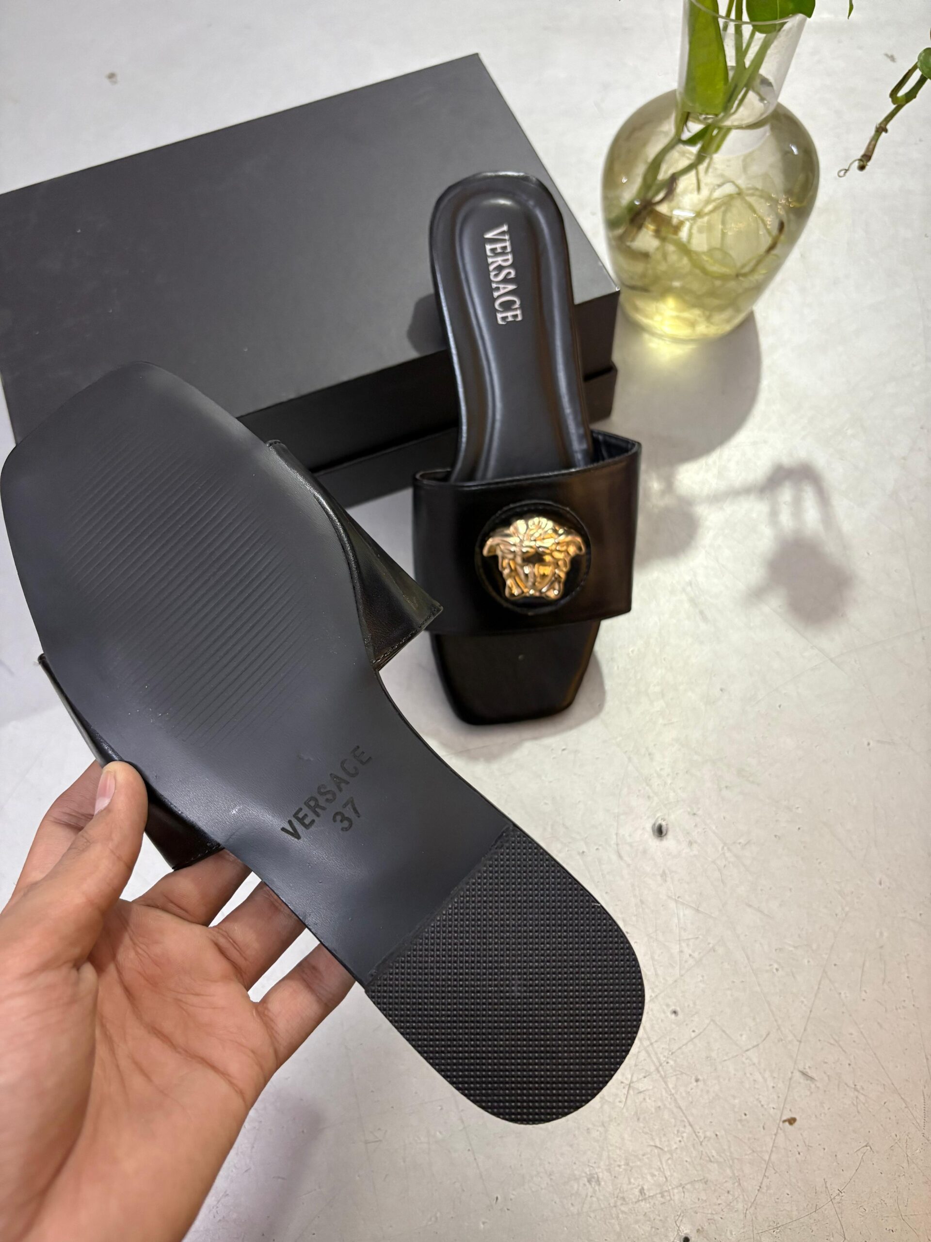 Available in multiple sizes and colors, our Versace Medusa First Copy Flats come with top-grade finishing, ensuring you get the closest look and feel to the originals—perfect for daily fashion, special occasions, or gifting.